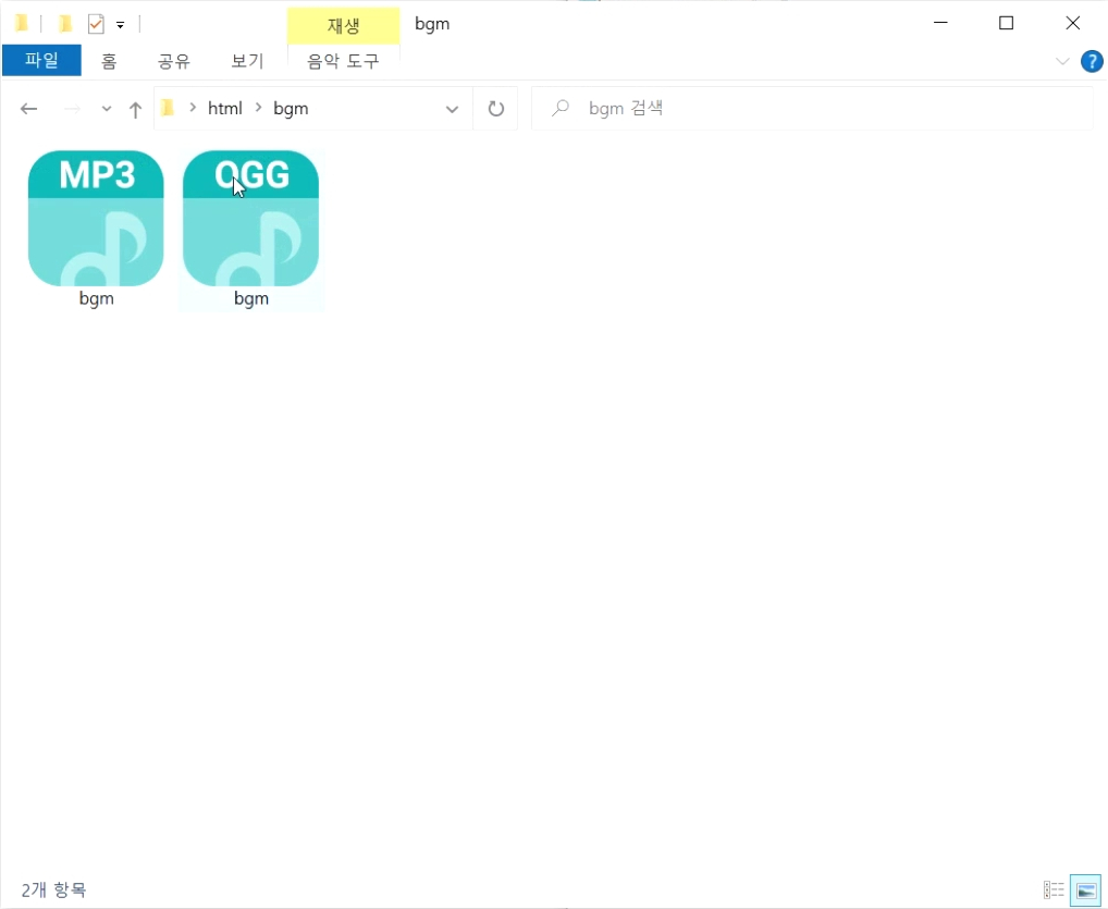 반대로 ogg 파일을 메인으로 사용하려면 코드만 위쪽으로 위치 변경을 하면 되겠습니다.